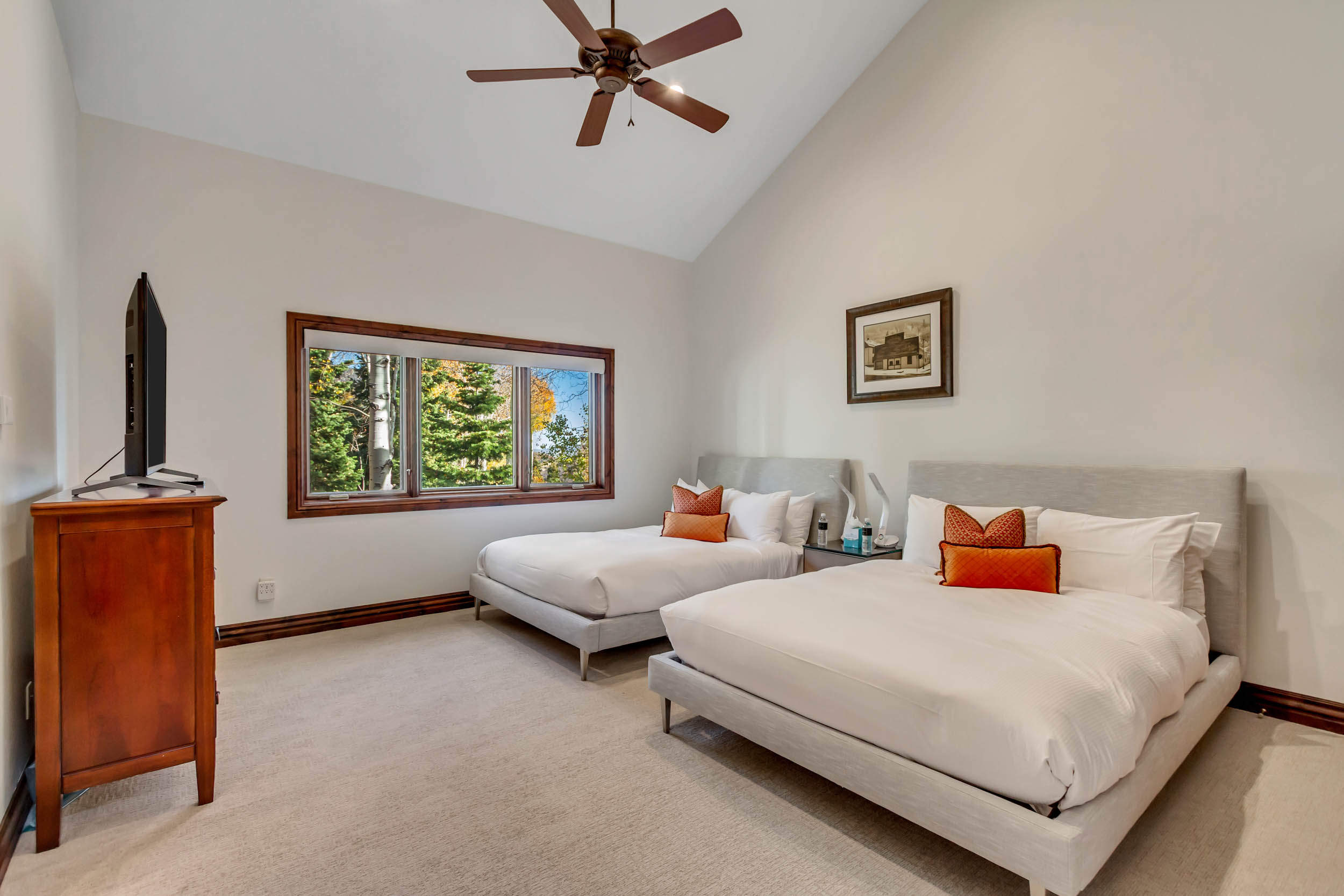 - Three bedrooms with queen bed; one bedroom with two queens